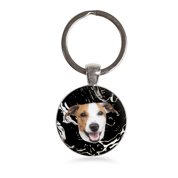 Custom Dark Marble Silver Circle Keychain